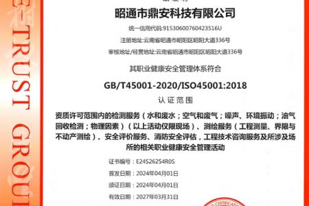 2003年11月10日,昭通市鼎安科技有限公司成立,初始主要從事第三方安全工程技術(shù)服務(wù),經(jīng)多年運(yùn)營,發(fā)展為多專業(yè)綜合科技平臺(tái),為社會(huì)提供多種專業(yè)技術(shù)服務(wù)工作。 現(xiàn)公司注冊(cè)資金為1200萬元,公司法定代表人:毛衛(wèi)旭。公司主要業(yè)務(wù):安全評(píng)價(jià)、安全標(biāo)準(zhǔn)化評(píng)審、安全工程技術(shù)服務(wù);環(huán)境監(jiān)測、職業(yè)衛(wèi)生檢測、檢驗(yàn);法律訴訟及非訴訟服務(wù);司法鑒定、固定資產(chǎn)投資項(xiàng)目節(jié)能服務(wù);工程咨詢;工程測量測繪;安全教育培訓(xùn)等。是安全生產(chǎn)服務(wù)、安全教育培訓(xùn)機(jī)構(gòu),也是環(huán)境監(jiān)測和職業(yè)衛(wèi)生服務(wù)機(jī)構(gòu),同時(shí)也是綜合的檢測檢驗(yàn)、綜合科技平臺(tái)服務(wù)機(jī)構(gòu)。多年來為公、檢、法、司、軍、警、海關(guān)、仲裁、安監(jiān)、工礦商貿(mào)企業(yè)、社會(huì)團(tuán)體及個(gè)人提供多專業(yè)技術(shù)服務(wù)。