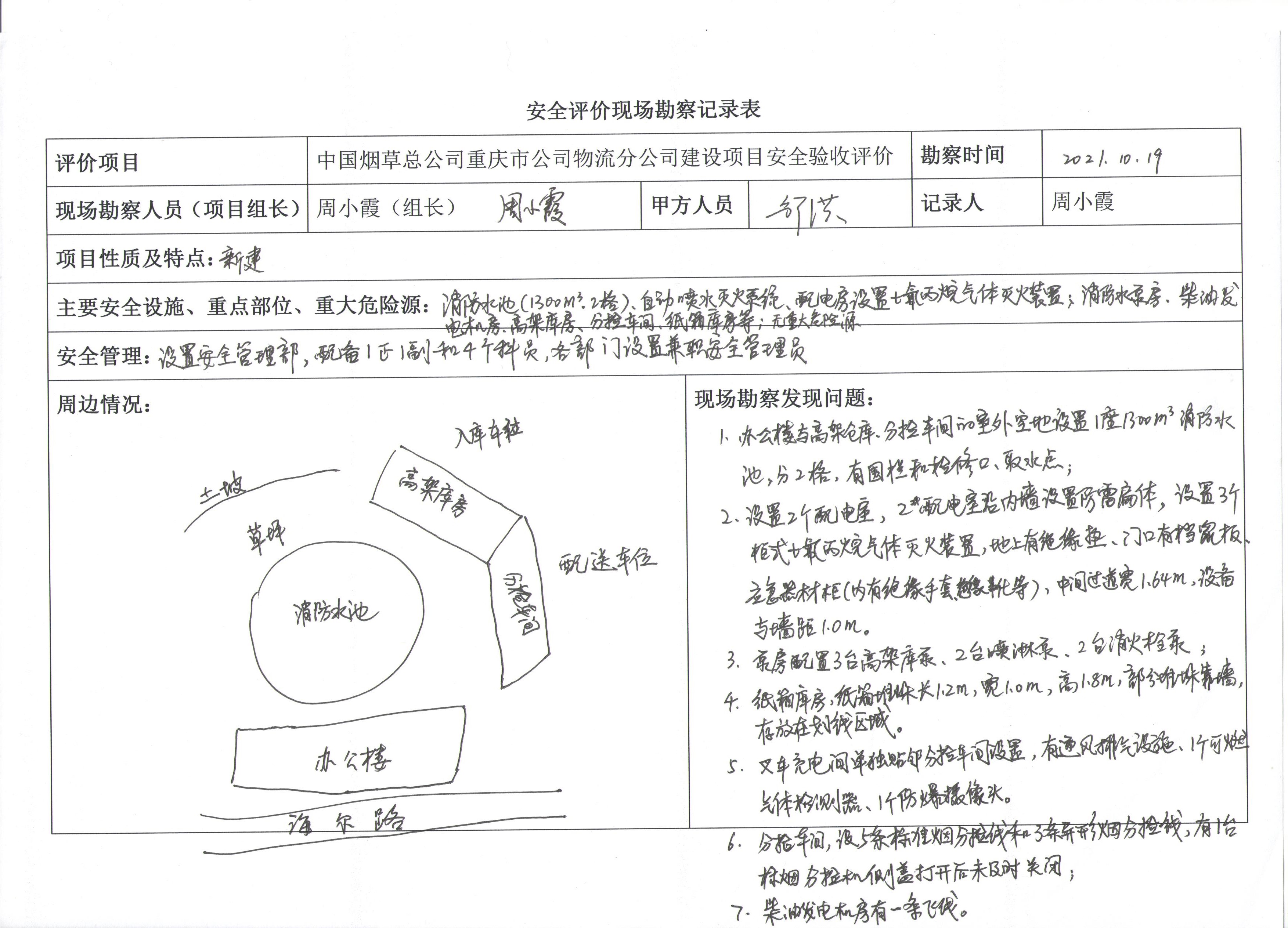 項(xiàng)目名稱 | 中國(guó)煙草總公司重慶市公司物流分公司江北卷煙配送中心易地技改項(xiàng)目安全驗(yàn)收評(píng)價(jià) | 合同 編號(hào) | DA(渝)PJ-006 | |||||