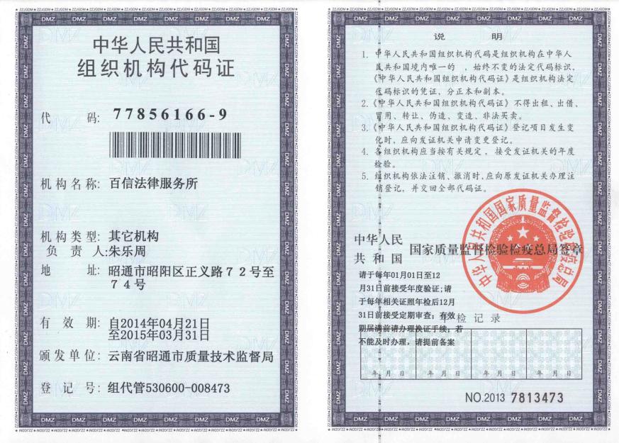 百信法律服務所組織機構代碼